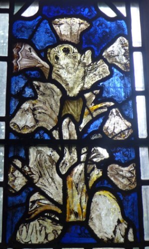 image has been found in a sixth-century Buddhist cave in China. The Lily Cross is another highly unusual image; there are only half a dozen or so examples in various forms - wall paintings, carving - in the U.K. |